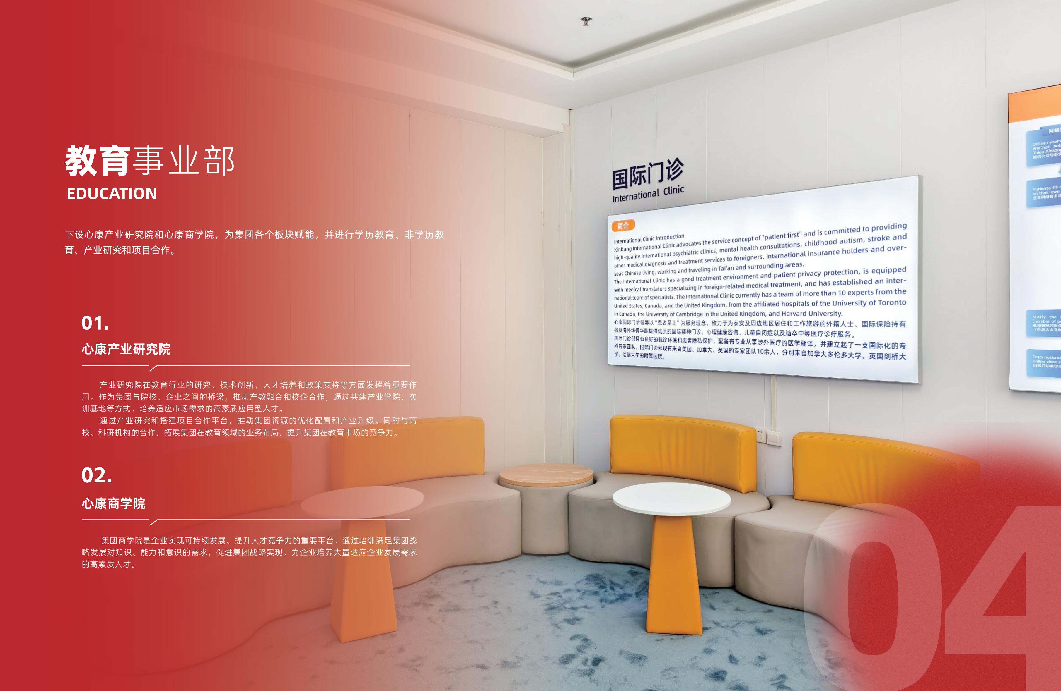 J9旗舰厅控股集團有限公司(簡稱“J9旗舰厅控股集團”)始建于2017年11月,集團總部位于山東泰安,總建筑面積七萬余平,現有員工700余人,是一家集醫(yī)、康、養(yǎng)、產、學、研于一體的綜合性健康產業(yè)集團公司。集團下設成康、醫(yī)康養(yǎng)、醫(yī)療科技、教育等事業(yè)部,通過“立足本土、放眼全球”的戰(zhàn)略布局,構建起多維度的心理康復服務體系。 集團參股的益語心股份(證券代碼:872220)已在新三板掛牌上市,益語心是國內專業(yè)解決兒童發(fā)育障礙問題的專業(yè)康復機構,我們遵從“測、評、醫(yī)、導、訓”醫(yī)教一體,將中醫(yī)、西醫(yī)、心理、康復、特教等多學科結合,“ICF三級康復體系”,建立了以醫(yī)學診療、精準評估、康復訓練、特殊教育、家長訪談、家庭心理疏導融為一體的綜合康復診療模式,主要為0-18歲孤獨癥、多動癥、抽動癥、發(fā)育遲緩、智力障礙、感統失調、專注力不集中、青少年心理健康等問題的兒童及其家庭提供精準診療康復服務。目前業(yè)務已經拓展到浙江、江蘇、廣東等地。